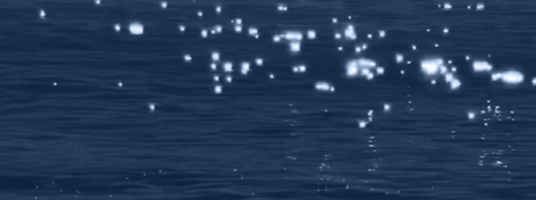 Like ancient constellations within mist, moonlight on the oceanโs glassy surface.
